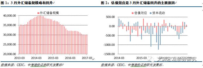 中国3月外汇储备30090.88亿美元,较2月的30051.24增加39.64亿美元,为2016年4月以来外汇储备规模首次连续两月上升。非美货币升值带来估值效应是外储回升的主要原因。与2月末相比,美元对欧元、英镑与日元分别贬值0.72%、1.24%和1.36%。而发达经济体债券收益率略有上行,美国、欧元区、日本与英国10年期国债收益率上升4BP、13BP、1BP与0BP,资产价格变动对外汇储备的影响相对较小。因此从整体上看,我们估计估值效应整体使外汇储备增加了80亿美元。